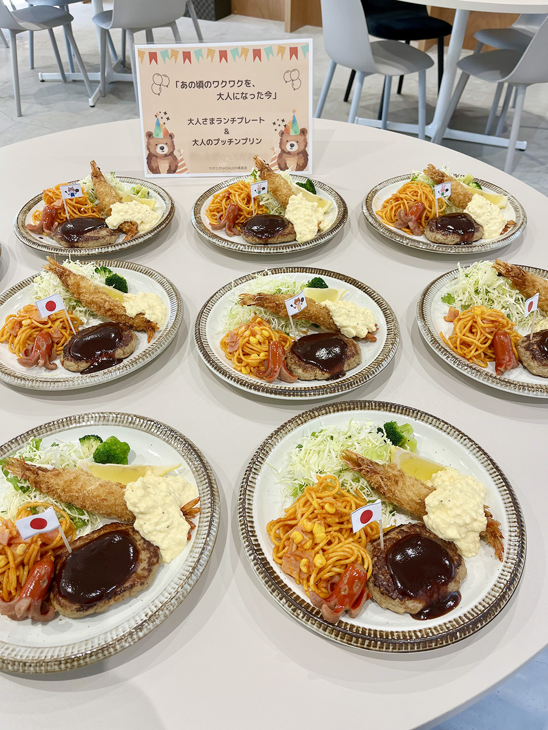 食堂にて、「大人さまランチプレート」と「大人のプッチンプリン」を振舞いました