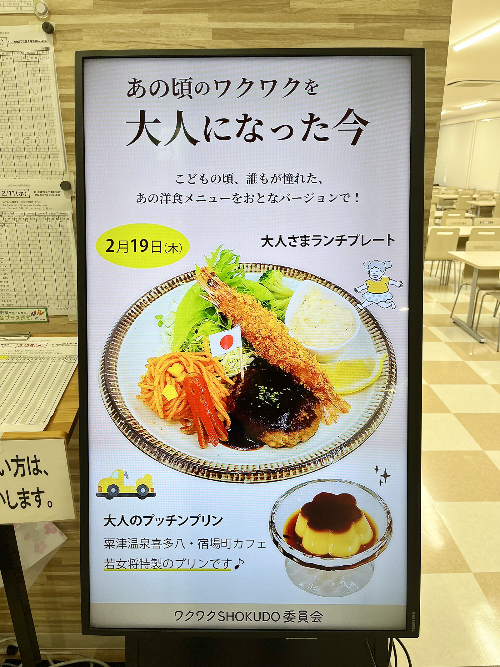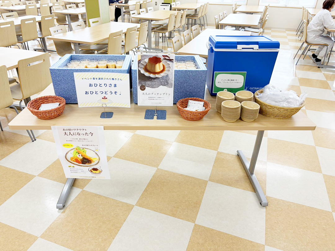 2月19日(木)、「食堂やぁや」「LaMamma」「HASADANI」にて「大人さまランチプレート」と「大人のプッチンプリン」を振舞いました。