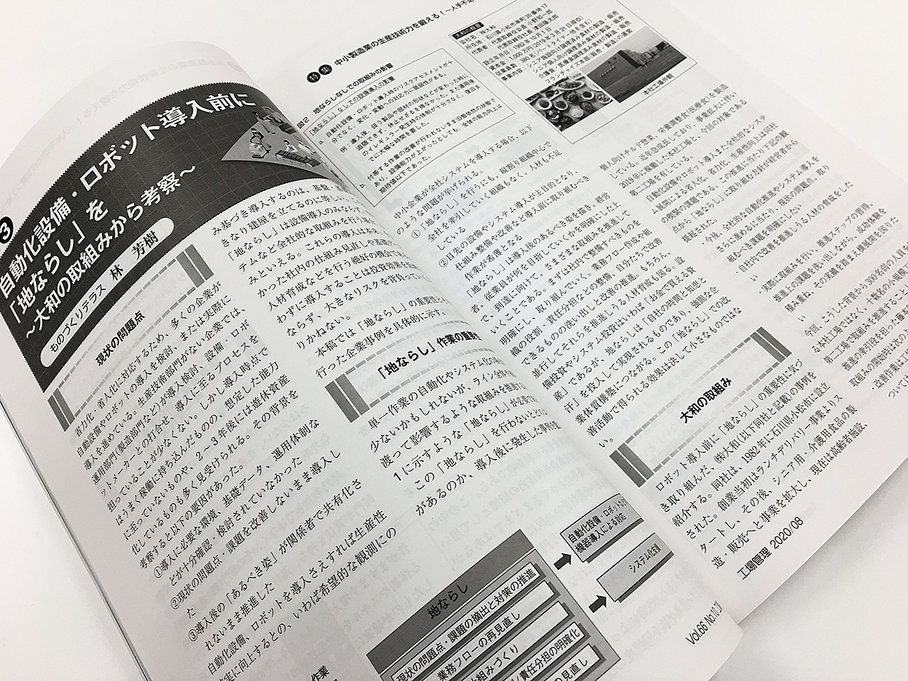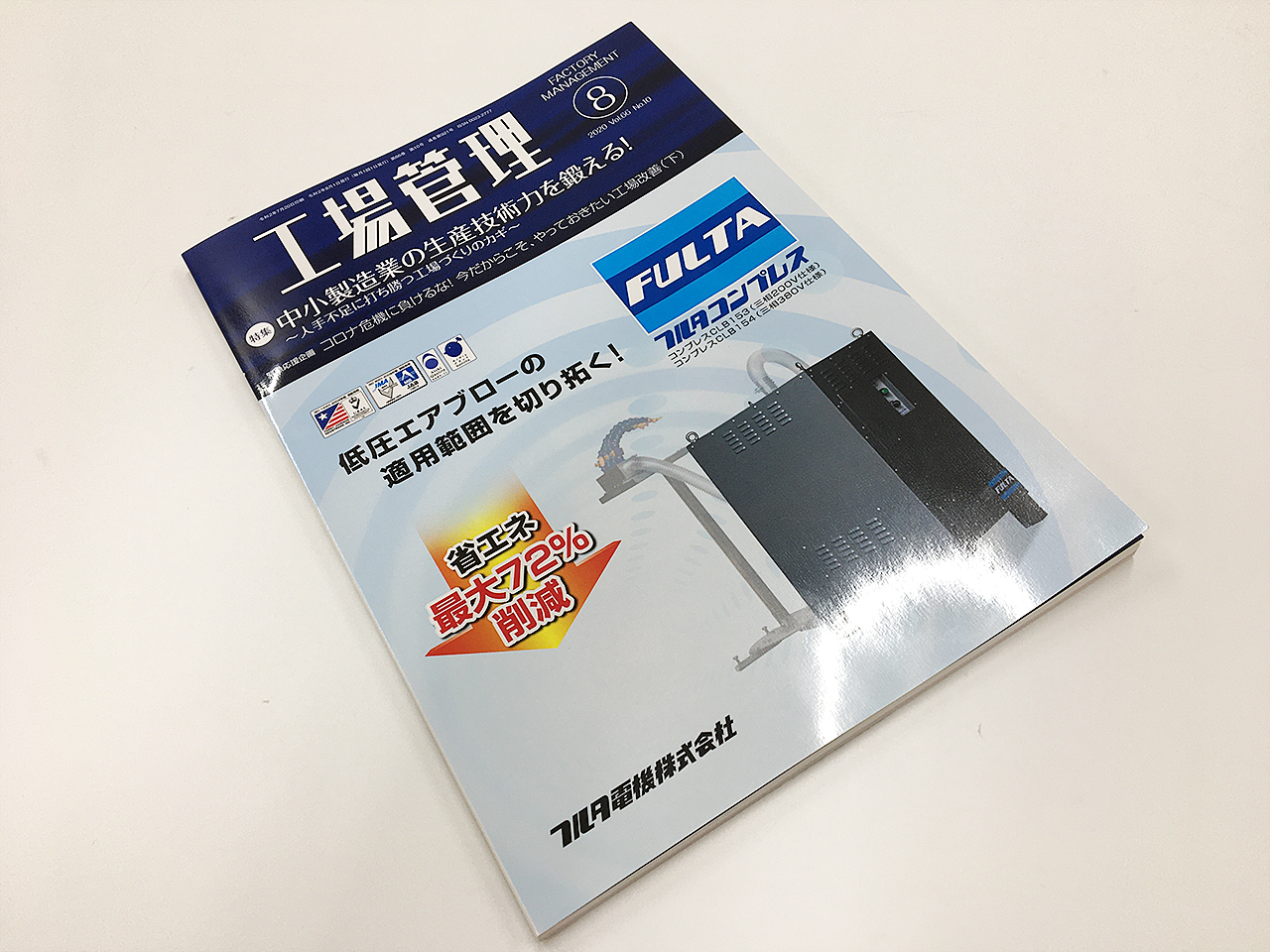 経営者、管理者、監督者などの幅広い読者層を対象に、実務的な改善の技法や生産システム、経営管理手法などを豊富な事例で紹介する、日刊工業新聞社が発行する雑誌「工場管理」8月号にて、弊社第二工場の生産性向上に係る取組みをご紹介いただきました。