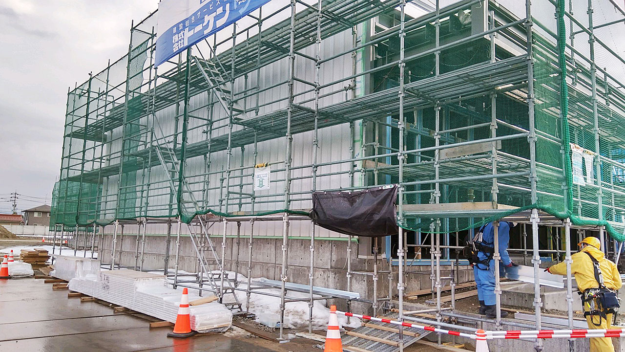 2022年1月17日(月)から外壁工事が始まり、2月11日(金)にほぼ完了しました。
