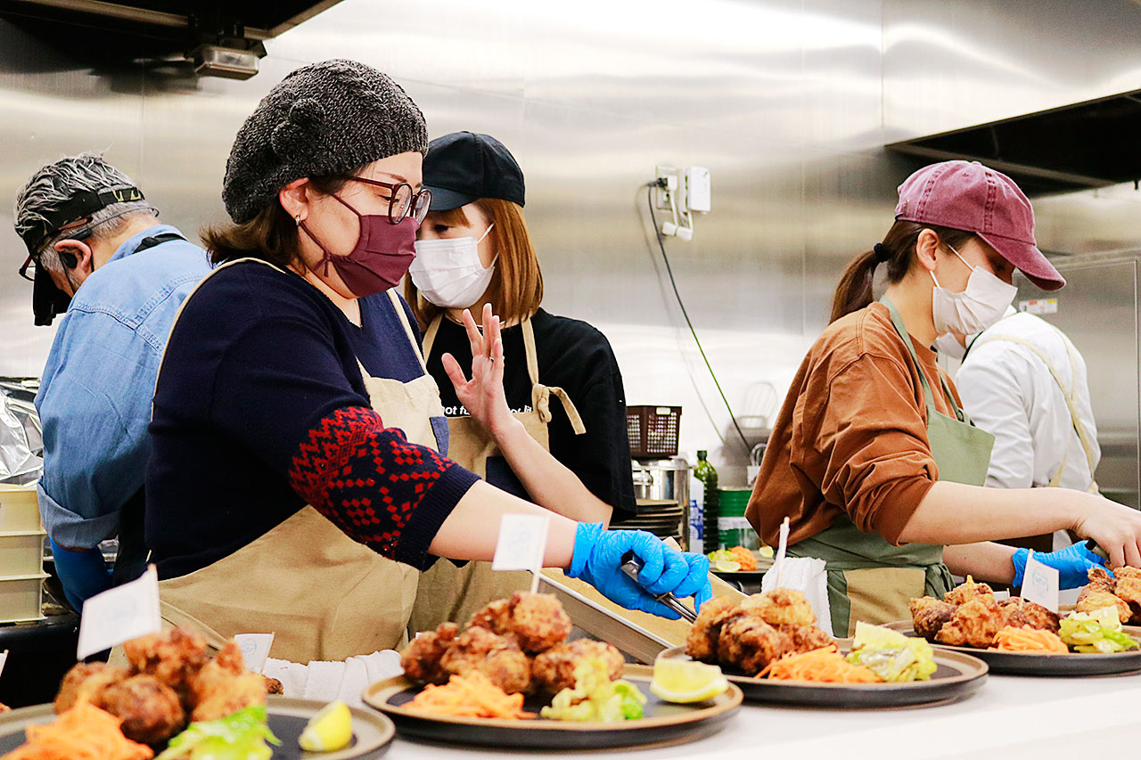 小松市の地元食財(酒かす・石川県内産米の米粉)を使った唐揚げで、働きさん(従業員)の皆さんはあっさりとしたお肉を楽しんでいました。