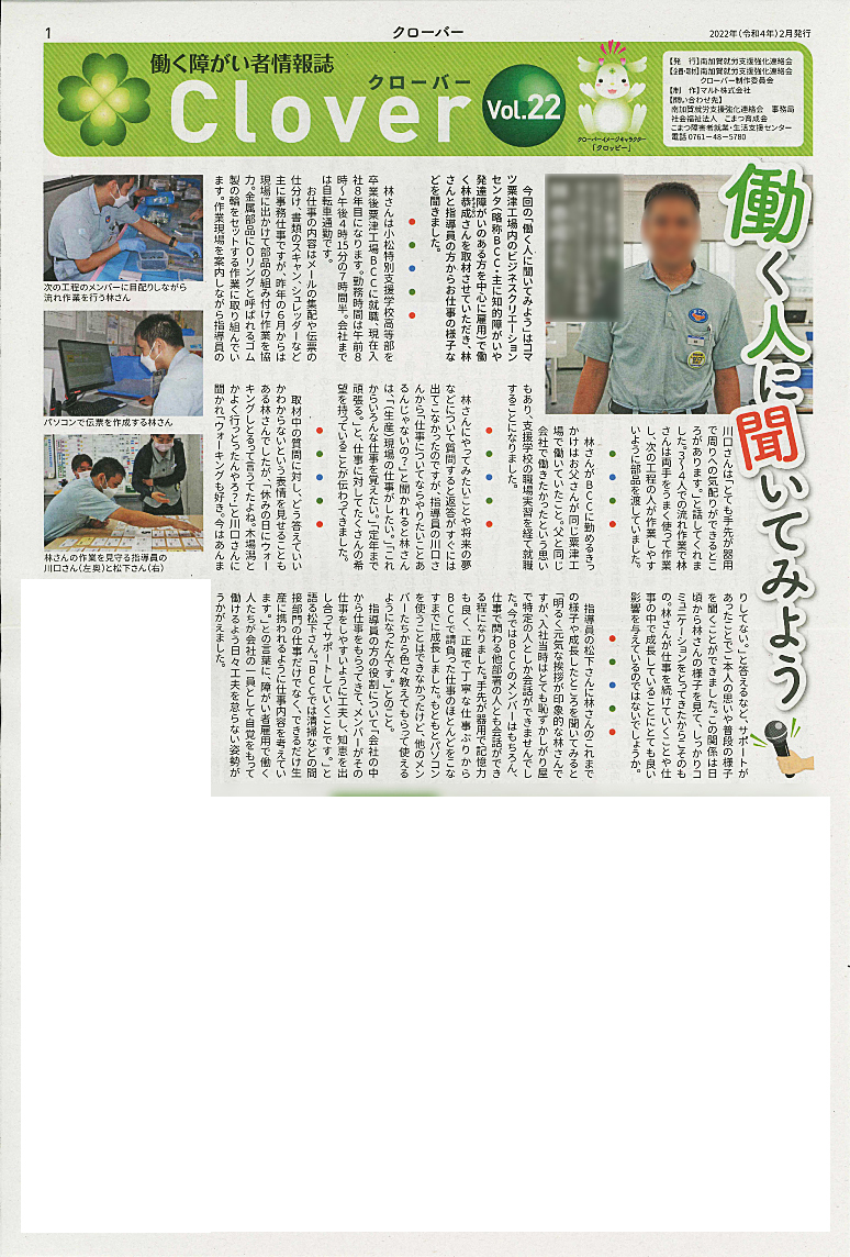 働く障がい者の方を応援するためのネットワーク「南加賀連絡協議会」が発行する情報誌「クローバー」でmake betterを紹介していただけることになりました。