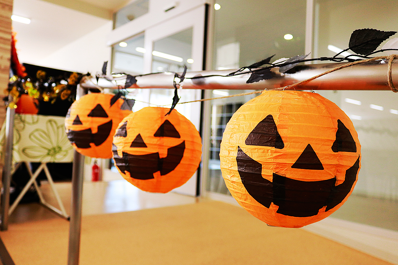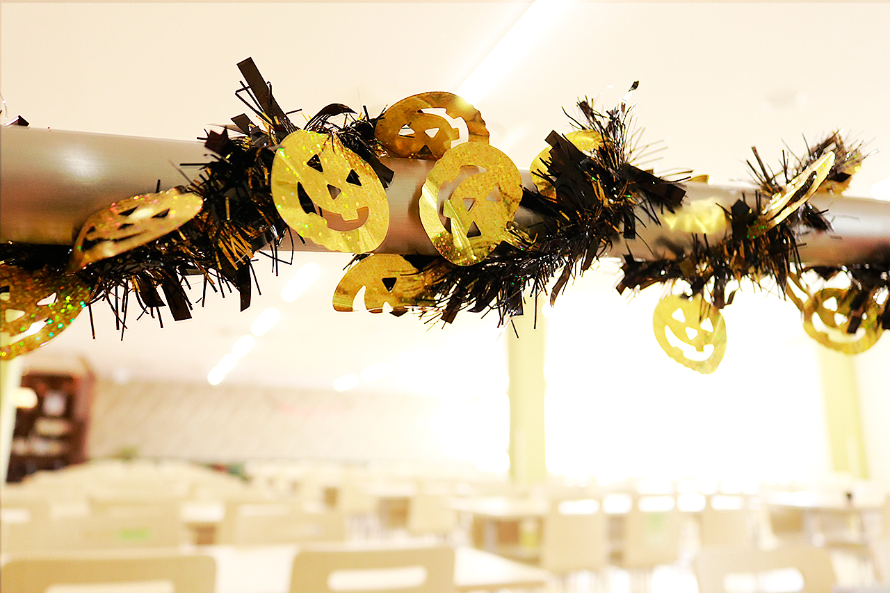 働きさん(=従業員)の皆さんがハロウィーン仕様に飾られた食堂で、ハロウィーンをモチーフに作られたお食事に舌鼓を打って楽しんでいました。