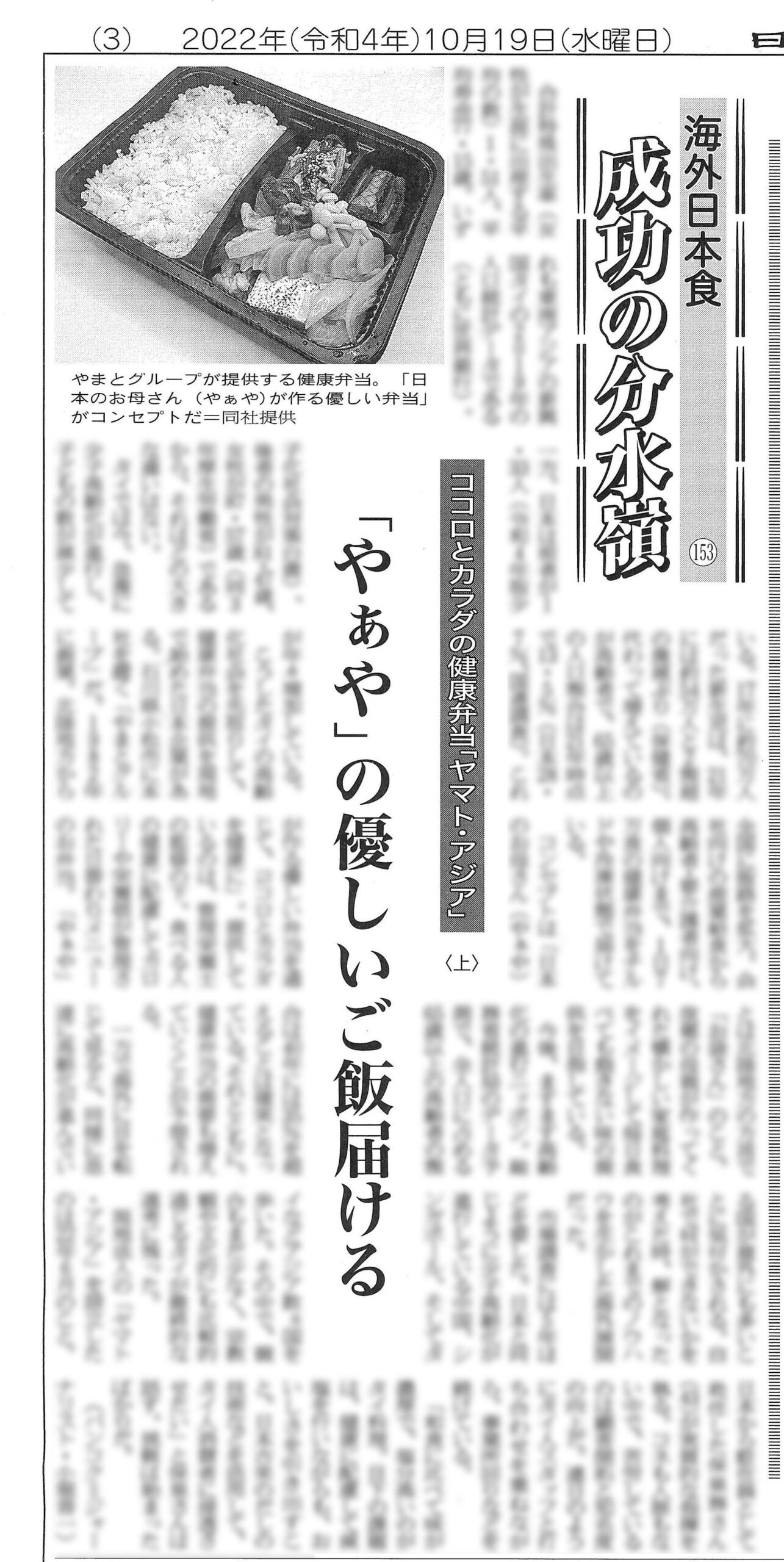 YAMATO Asiaが日本食糧新聞に掲載されました。