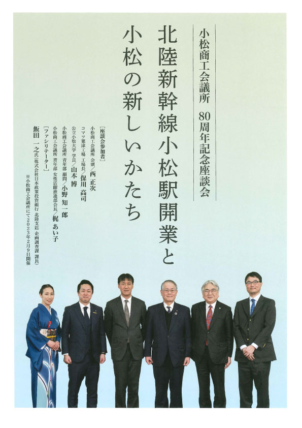 2/9(木)小松商工会議所創立80周年を記念して開催されました座談会「北陸新幹線小松駅開業と小松の新しいかたち」に、やまとグループ株式会社 代表の小野知一郎が参加させていただきました。