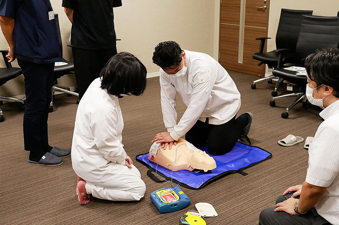 やまとでは、定期的に「AED(⾃動体外除細動器)社内講習会」を実施しています。