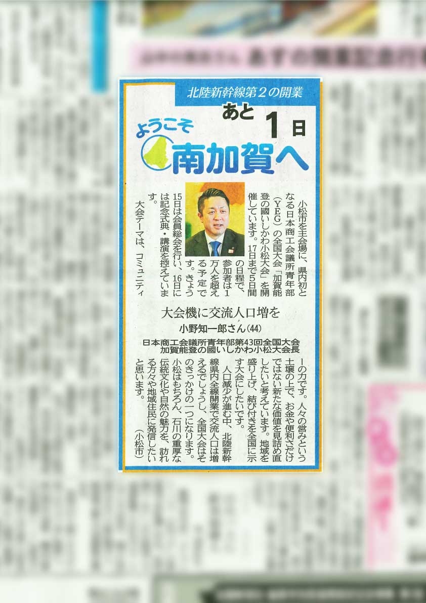 2024年3月13日(水)~17日(日)日本商工会議所青年部の全国大会加賀能登の國いしかわ小松大会が開催されました。