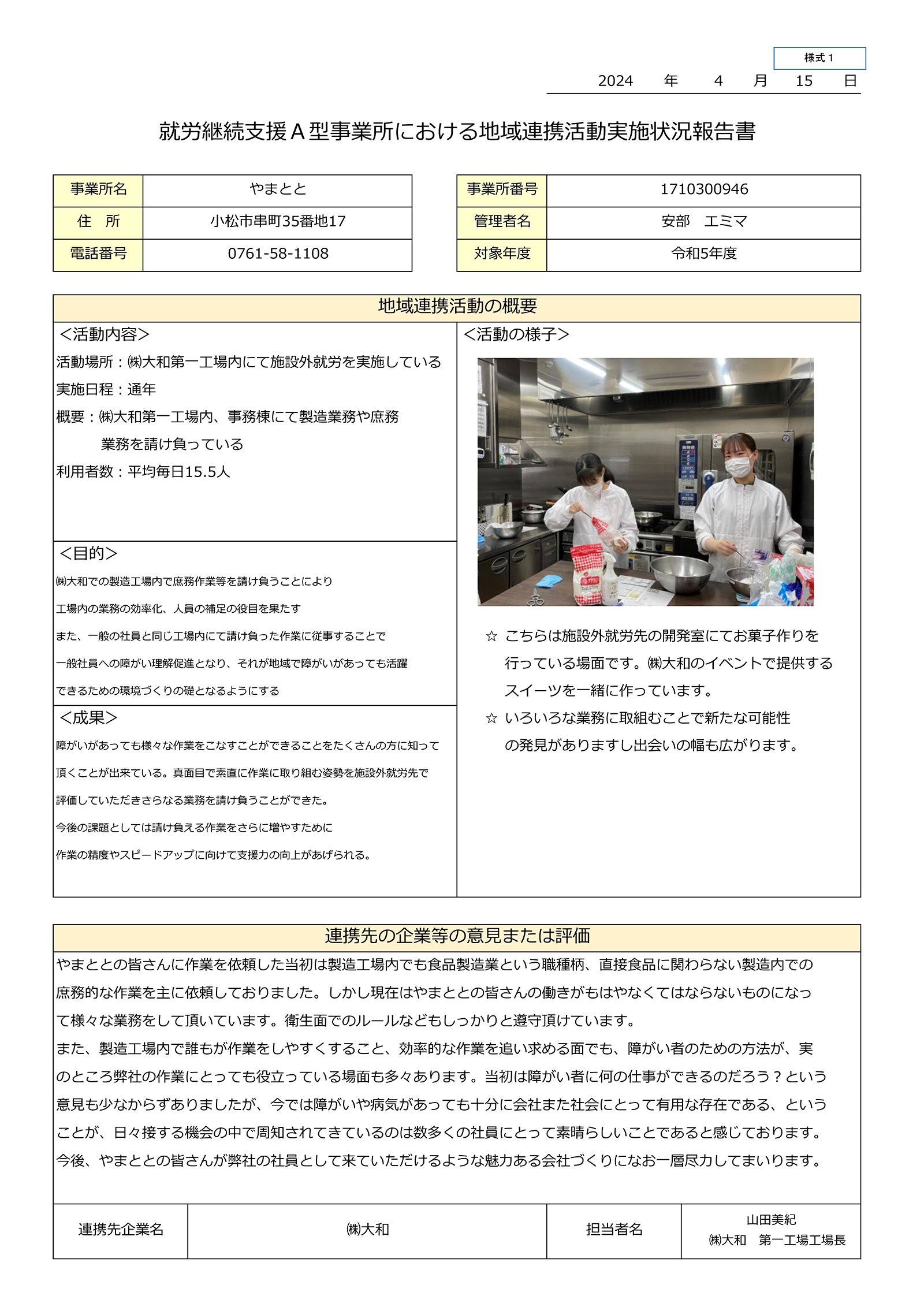 ”地域連携活動”として㈱大和と㈱make betterの様子を石川県障害保健福祉課に報告しました。
