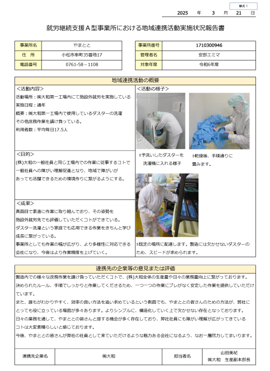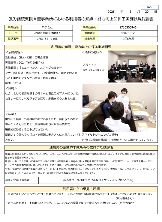 就労継続支援A型事業所㈱makebetterやまととの2024年度の取り組みを石川県障害保健福祉課に報告しました。